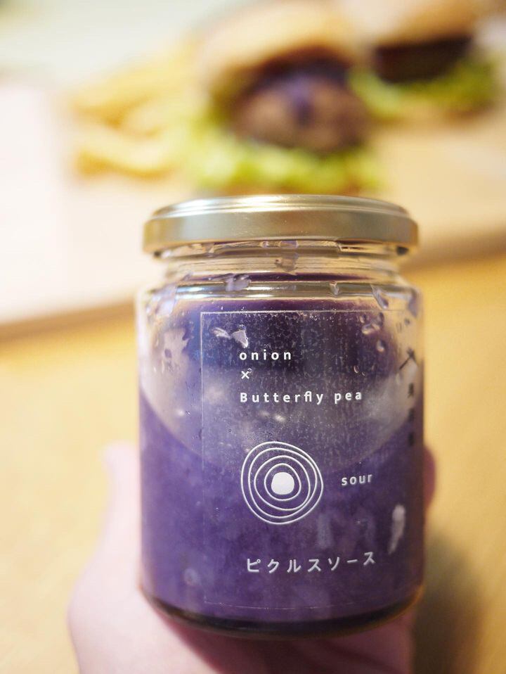 ブルーカラーは天然ハーブ「バタフライピー」を贅沢にたっぷり使用しました。この青い色には「アントシアニン」が含まれ、それは抗酸化作用を持つポリフェノールの一つで、エイジングケア効果を期待できるといわれている天然ハーブです。食欲が失せるといわれる青いカラーですが、このピクルスソースは玉葱とピクルスソースがキラキラと輝きまるで宝石のような見た目。お洒落なお料理に大変身!食欲も失せるどころか増すはず!
