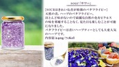 ブルーカラーは天然ハーブ「バタフライピー」を贅沢にたっぷり使用しました。この青い色には「アントシアニン」が含まれ、それは抗酸化作用を持つポリフェノールの一つで、エイジングケア効果を期待できるといわれている天然ハーブです。食欲が失せるといわれる青いカラーですが、このピクルスソースは玉葱とピクルスソースがキラキラと輝きまるで宝石のような見た目。お洒落なお料理に大変身!食欲も失せるどころか増すはず!