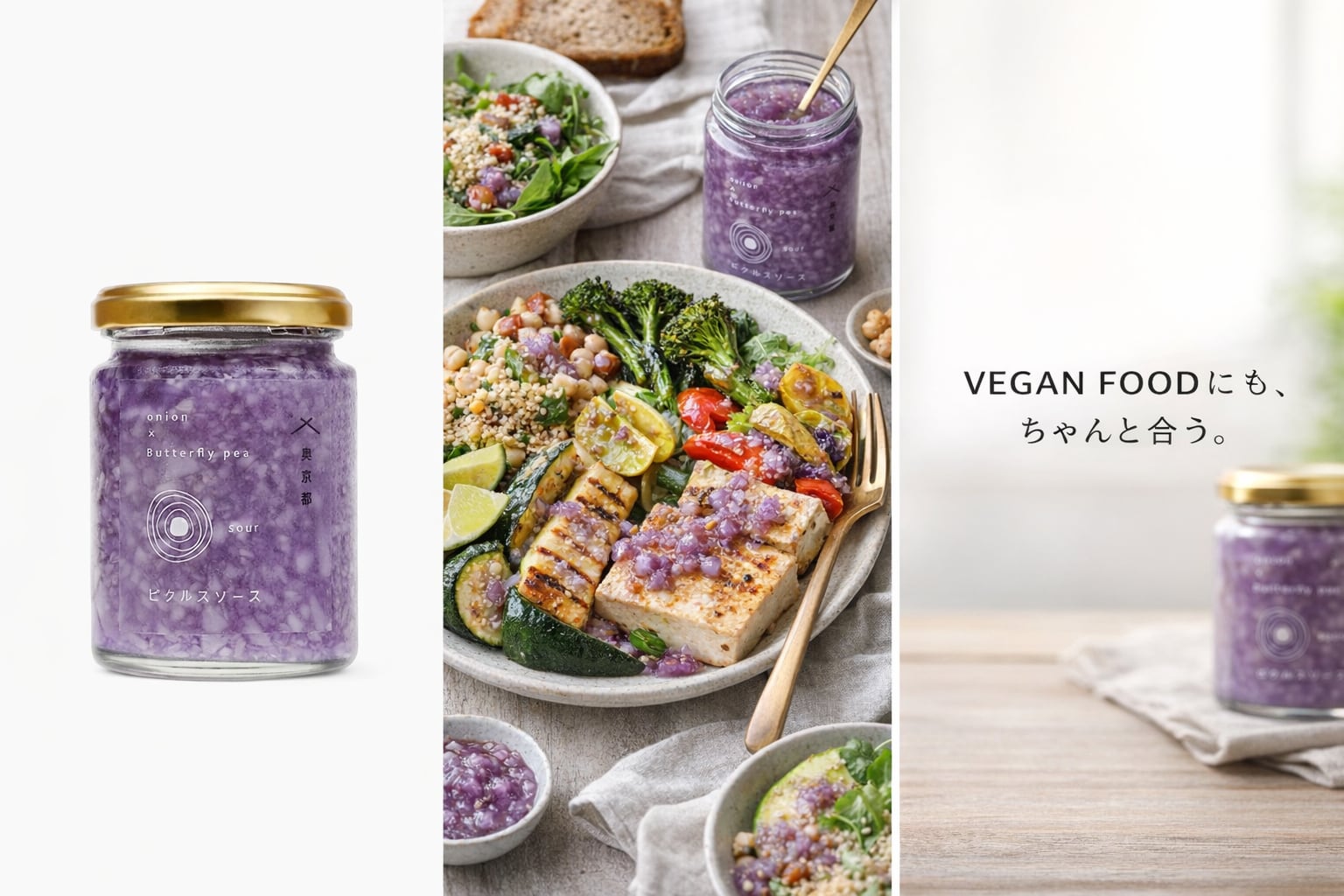 ブルーカラーは天然ハーブ「バタフライピー」を贅沢にたっぷり使用しました。この青い色には「アントシアニン」が含まれ、それは抗酸化作用を持つポリフェノールの一つで、エイジングケア効果を期待できるといわれている天然ハーブです。食欲が失せるといわれる青いカラーですが、このピクルスソースは玉葱とピクルスソースがキラキラと輝きまるで宝石のような見た目。お洒落なお料理に大変身!食欲も失せるどころか増すはず!